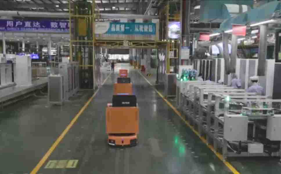 为车载冰箱物流配送打造的智能解决方案,,包含产中物流通过潜伏举升AMR搬运至线边,,产后成品物流智能仓储,,流程包含产中物流智能齐套入库,,,线边安灯叫料AMR智能配送至线边,,,,成品入库、、、、出库,,通过无人堆高车机器人,,智能仓储管理替代人工作业管理,,实现更高存储、、、更高效率、、、更具柔性化的解决方案。。