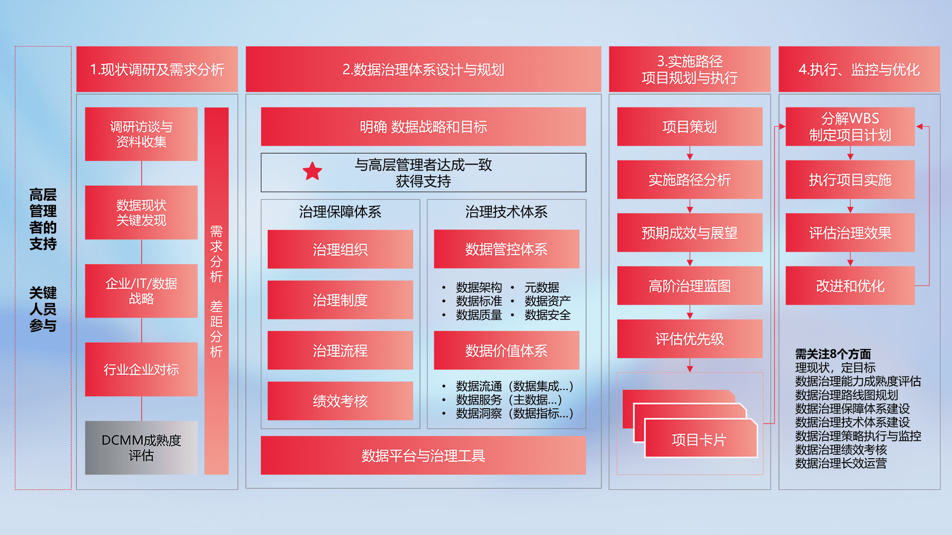 制定并执行统一的数据标准,,规范数据定义和格式,,,,消除冗余和不一致性,,实现跨部门和跨系统的数据一致性,,,,为企业提供标准化的数据基础。。